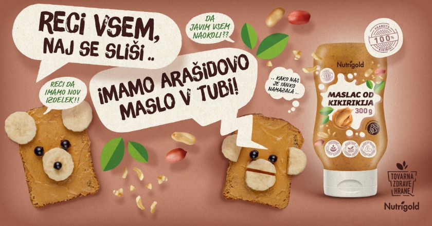 Ste že navdušeni nad našim izvrstnim arašidovim maslom, narejenim iz 100 % visokokakovostnih arašidov, brez umetnih dodatkov in aditivov? Zdaj smo ga zapakirali v praktično squeeze embalažo, ki omogoča še enostavnejše, hranljivo in okusno uživanje.