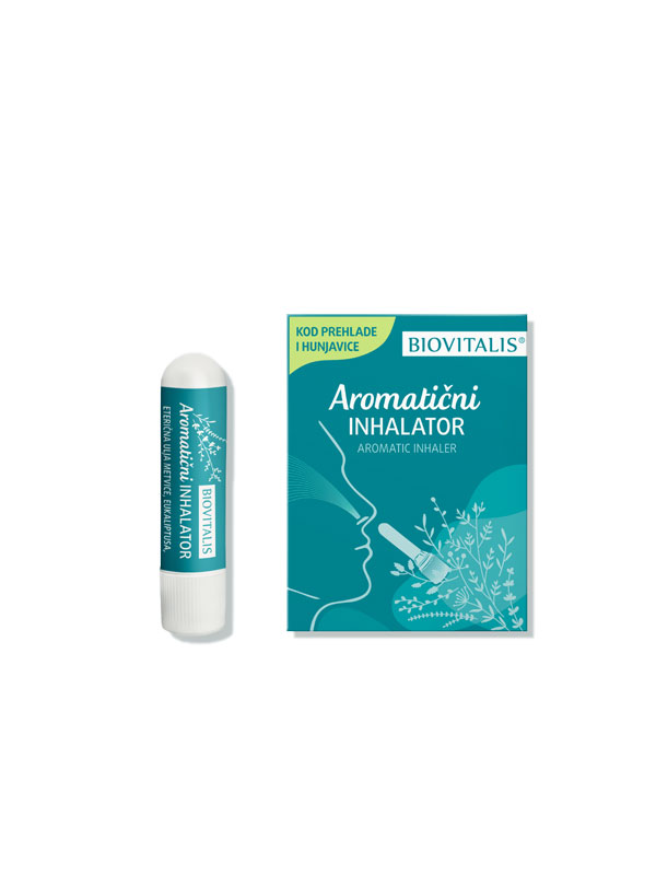 Biovitalis aromatični inhalator vsebuje 100% ekološka eterična olja japonske mete, evkaliptusa, rdečega bora in kafrovca.