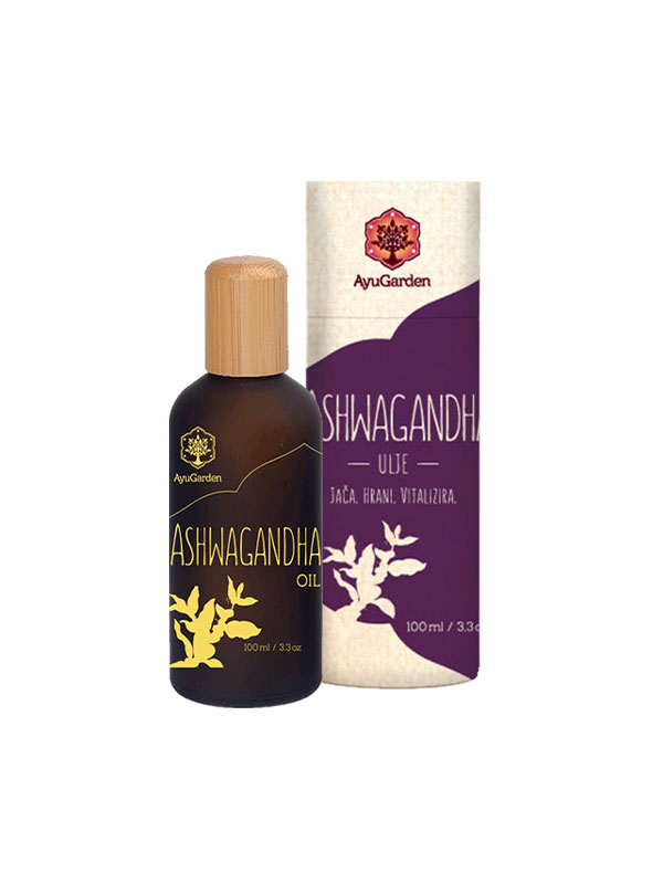 Ashwagandha, znana tudi kot "indijski ginseng" je starodavno bila uporabljena v Ayurvedi, zaradi svojih vsestranskih prednosti za zdravje. AyuGarden posebna formula olja Ashwagandha daje globoko hidracijo, in hrani vašo kožo znotraj, ter jo naredi mehko in žametno.