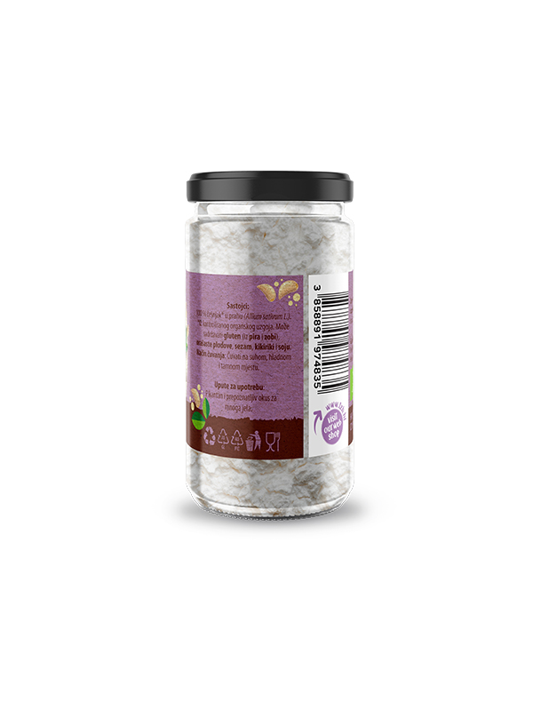 Nutrigold česen v prahu prihaja iz certificiranega ekološkega kmetovanja in je proizveden iz izbranih strokov svežega česna, ki ga nato skrbno posušimo in zmeljemo, da dobimo prah popolne teksture.