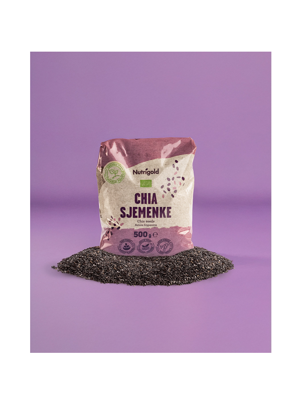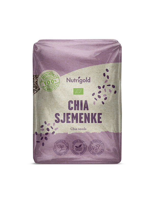 Chia je prepoznavna po odlični absorpciji vode in svoji gel teksturi, ki ji v mešanici z vodo omogoča, da služi kot jajčni nadomestek v skoraj vsakem receptu. Nutrigold chia semena lahko dodate k svoji priljubljeni kaši ali osvežilnem sadnem smutiju, solati ali v mešanico zdravega kruha.