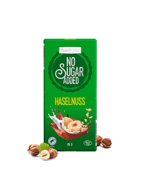 Okusite hrustljave koščke lešnikov v sladki čokoladi Frankonia, ki vsebuje samo naravno prisotne sladkorje.