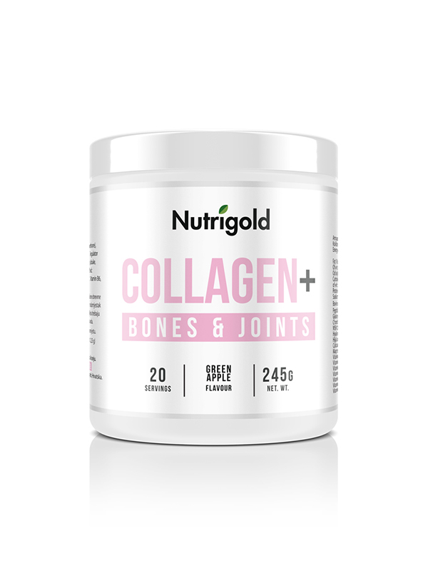 Nutrigold kolagen Bones & Joints je obogaten z okusnim in naravnim okusom po jabolkih in ima edinstveno BODYBALANCE® formulo peptidov hidroliziranega govejega kolagena in hialuronske kisline za regeneracijo sklepov z dokazanimi učinkovinami, kot so MSM, hondroitin in glukozamin, ki prispevajo h gibljivosti in lajšajo bolečine v sklepih in kosteh.