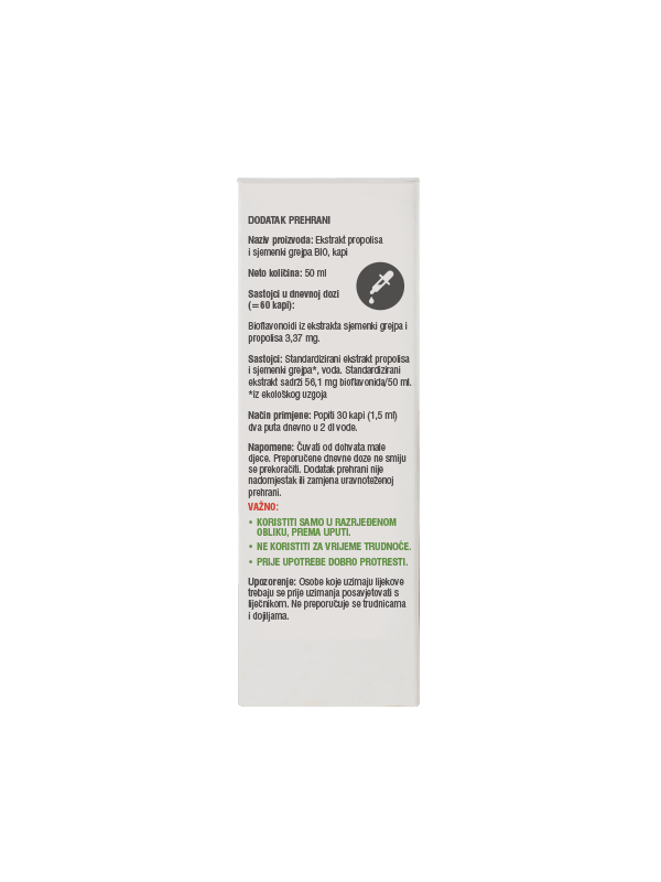 Ekstrakt propolisa in grenivkinih semen Ekološki, kapljice,l prehransko dopolnilo.