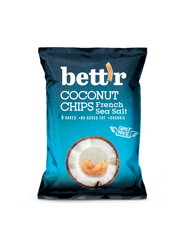 Skrbno izbrana surovina kokosa iz ekološke pridelave je skrbno pečena do hrustljave strukture podobne navadnem čipsu, z dodatkom francoske soli, bo naredila Bett'r odličnim zdravim prigrizkom.