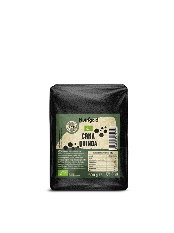 Nutrigold črna kvinoja vsebuje 100% visoko kakovostnih semen kvinoje (lat. Chenopodium quinoa) iz ekološke pridelave, ki jo zaznamuje bogat hranilni sestav.