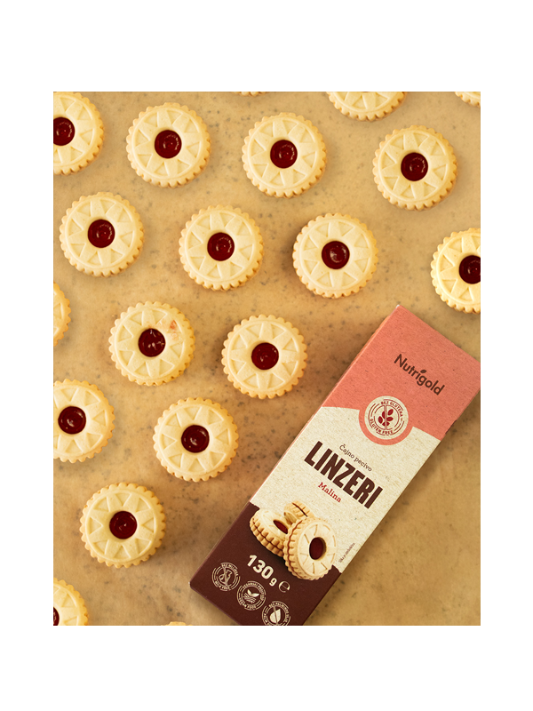 Linzeri so čajni piškoti, ki tradicionalno označujejo božični čas. Majhni so in okusni ter prihajajo v različnim oblikam in s svojim okusom navdušili bodo vse člane vaše družine. Krhkemu testu v kombinaciji z marmelado se je težko upreti, zato je Nutrigold pripravil piškote po posebnih receptih z malinovim sadnim nadevom.