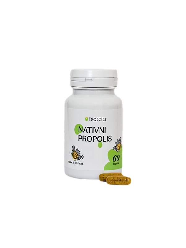 Nativni Propolis je popolnoma naravni prehranski dodatek, ki združuje čisti hrvaški propolis in čebelji pelod dalmatinske rastline bušinac (Cistus sp.). Ta inovativen izdelek je proizveden brez kemične obdelave, kar ohranja prvotne zdravilne lastnosti propolisa in peloda. Nativni Propolis močno krepi imunski sistem, deluje protivnetno, antibakterijsko in antivirusno ter je bogat z antioksidanti, vitamini in minerali.