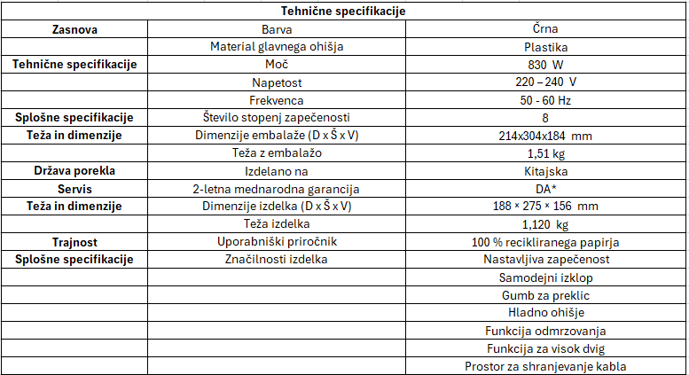 Opekač je enostaven za čiščenje zahvaljujoč odstranljivemu pladnju za drobtine in funkciji visokega dviga, dodatna funkcija samodejnega izklopa pa ščiti izdelek pred kratkimi stiki.