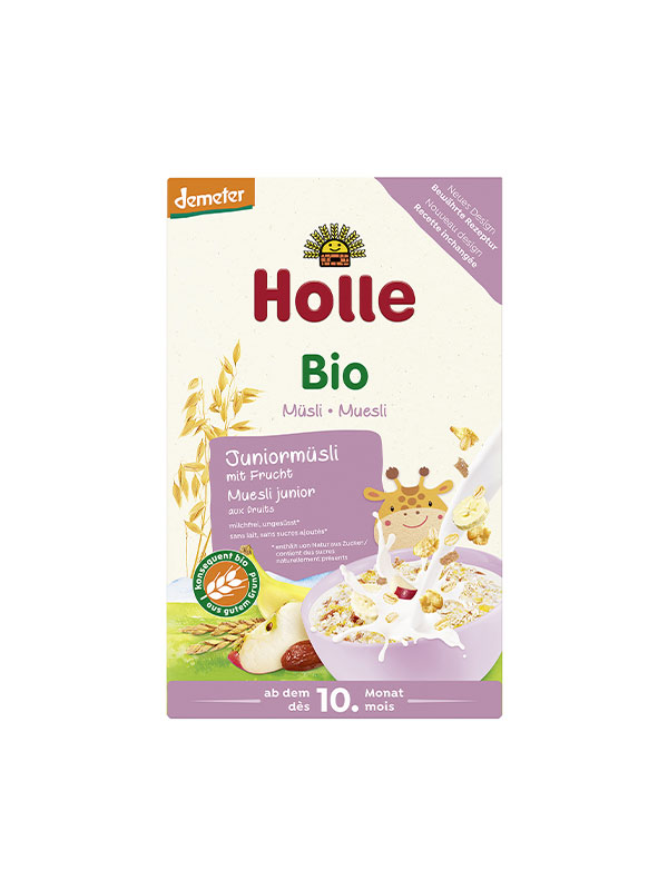Holle otroški müsli s sadjem je odlična izbira za zdrav in hranljiv zajtrk za vašega malčka od 10. meseca starosti. Ta skrbno izbrana mešanica žitaric in sadja vsebuje samo ekološke sestavine, brez dodanega sladkorja ali umetnih dodatkov. Kombinacija fino mletih polnozrnatih kosmičev in naravno sladkega sadja poskrbi za blag okus in lahko prebavljivo teksturo.