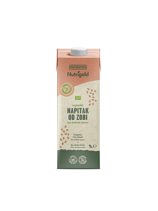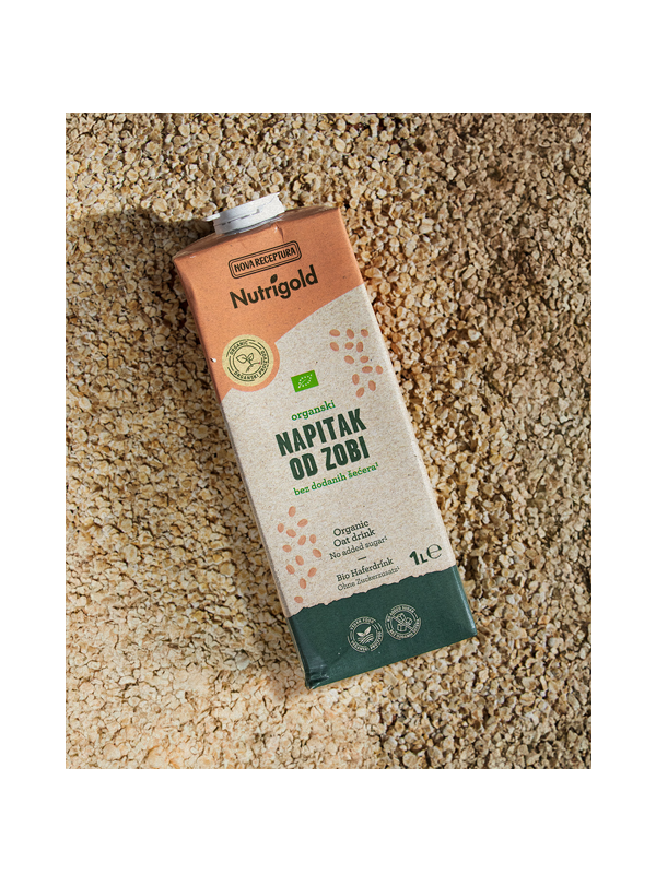 Nutrigold napitek iz ovsa je izdelek pridobljen z obdelavo celotnega zrna ovsa iz ekološke pridelave.