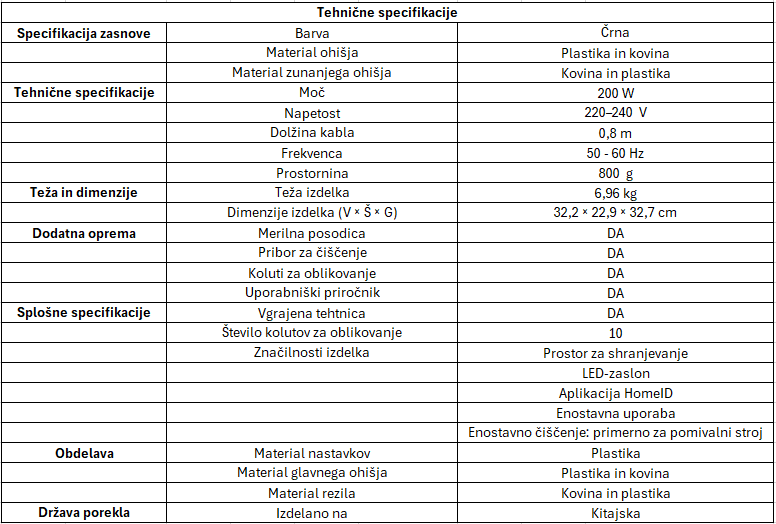 Močan motor in kovinski mešalni drog zagotavljata popolno testo vsakič, integrirana tehtnica pa poskrbi za natančne razmerja tekočine in moke. Uživajte v okusnih in svežih testeninah v manj kot 10 minutah, brez napora in zapletov.