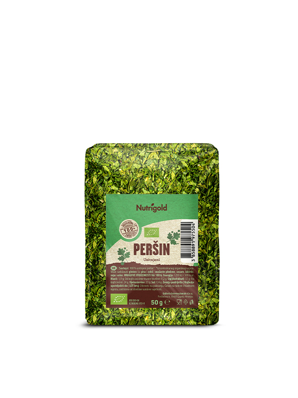 Nutrigold peteršilj je pridobljen z mletjem najbolj kakovostnih listi peteršilja, ki so skrbno gojeni v ekoloških pogojih. Izjemno bogatih arom spreminja navadne jedi v vrhunske specialitete.