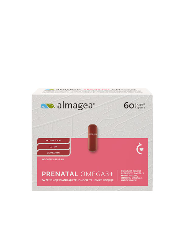 Uravnotežena in raznolika prehrana je ključnega pomena pred in med nosečnostjo ter med dojenjem. Almagea® Prenatal Omega3 + zadovoljuje povečane potrebe po hranilih v teh obdobjih. Hranila, ki jih je mati vzela med dojenjem, se izločajo z mlekom in tako posredno varujejo otroka.