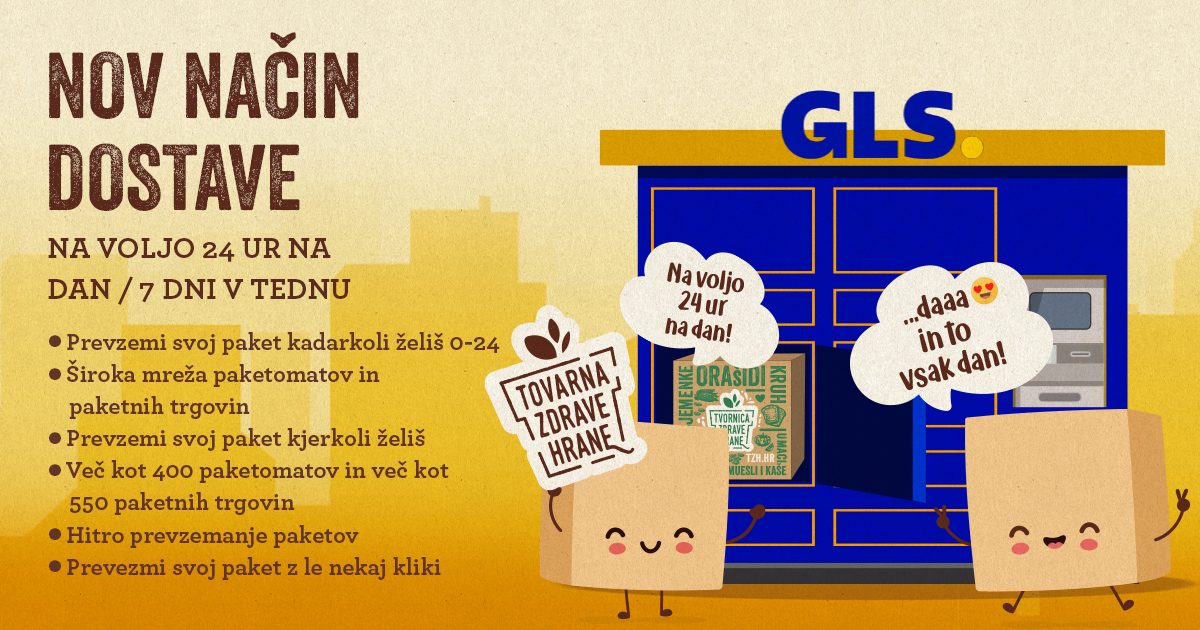 Uživaj v hitri, fleksibilni in varni dostavi svojih najljubših izdelkov na GLS paketomatih po vsej Sloveniji. Zdaj pa lahko prevzameš svoje naročilo kadarkoli ti to ustreza, brez da čakaš doma! ![]()