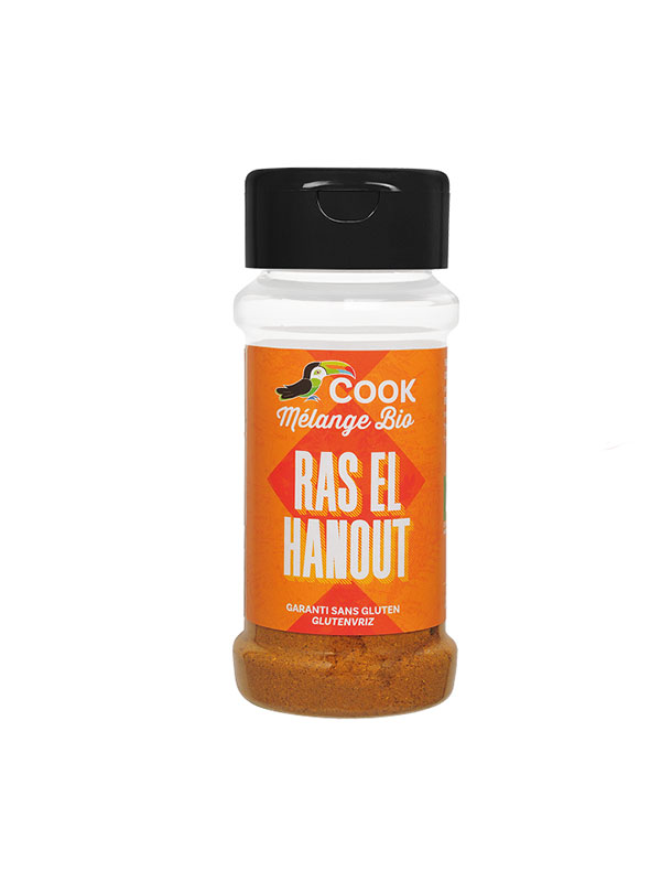 Aromatična Ras el Hanout mešanica začimb vsebuje kurkumo, cimet, komarček, klinček, muškatni orešček, črni poper, lovor, čili papriko. Ta bogata kombinacija začimb jedem da odlično aromo in pikantnost.
