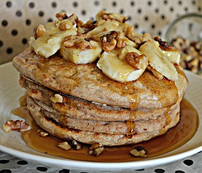 - Zmešajte vse sestavine, dokler zmesi ni enotna in tekoča. Pecite kot klasične palačinke. Najboljše so z arašidovim maslom in sadjem.