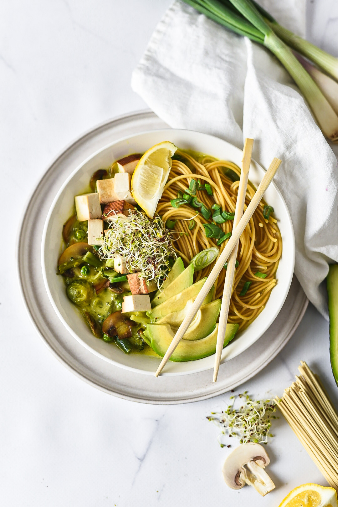 Curry in tofu se imata rad! S pomočjo kokosovega mleka, bosta ta 2 prijatelja naredila popolno kremasto omako in dodatek testeninami. Kosilo ali lahka večerja? Je vseeno, oboževali boste to jed.