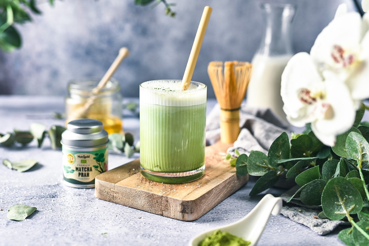 Matcha latte je neustavljiva kombinacija matcha praha, posebne vrsti zelenega čaja, čigavi listi se zmeljejo do fine teksture, ter iz rastlinskega (ali kravjega) mleka. V nadaljevanju je hitri recept za najljubši matcha latte, popolno kremaste teksture in čudovito zelene barve, ki zbudi vse čute, vam da energijo in je odlični nadomestek kave.