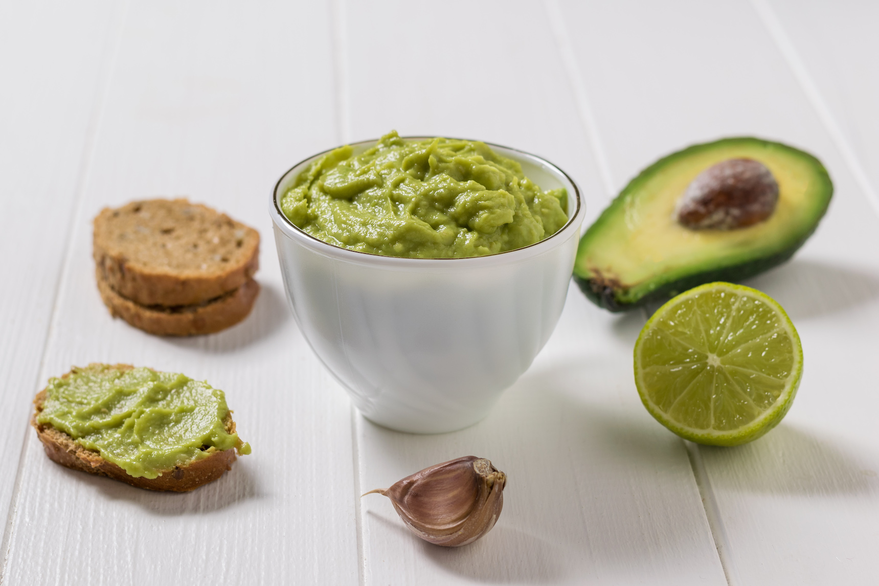 Avokado vsebuje celo 11 do 17 gramov vlaknin in nenasičenih maščob, ki pomagajo v boju proti maščobnih oblog. Bogat je vir vitamina E, spodbuja regeneracijo telesa, uravnava raven sladkorja v krvi in je odličen za preprečevanje srčnih bolezni. Zmanjšuje slabi holesterol (LDL) in povečuje dober (HDL) ker vsebuje oleinsko in linolejsko kislino. Avokado vsebuje tudi folno kislino in tako pomaga ohraniti zdravje jeter, kosti in las. Ker je guacamole narejen iz avokada, lahko rečemo da je ta omaka zelo hranljiva in zdrava. Po porciji, namaz iz avokada vsebuje okoli 250 kalorij, 22 g maščob, 16 g ogljikovih hidratov in g beljakovin.
