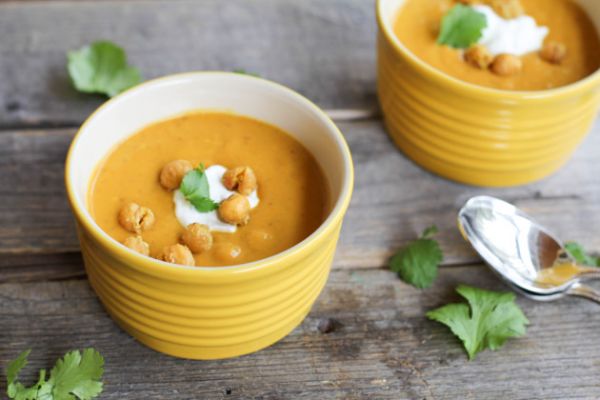 - Dodajte začimbe in kuhajte 30-40 minut (dokler čičerika ne bo mehka na vilico) in vse dobro zmešajte s paličnim mešalnikom ali v mešalniku, da dobite gosto juho.