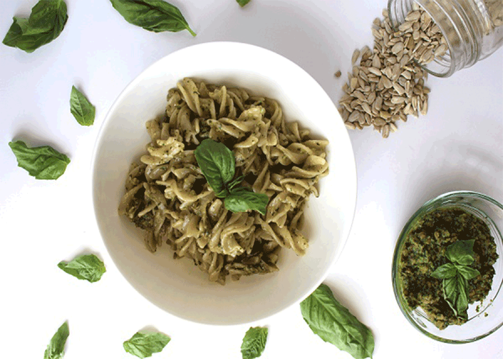 Tako okusen pesto je najboljše postreči s hranljivimi in polnozrnatimi testeninam ki je hranilno in okusno boljša od navadne bele. Predlagamo naslednje: