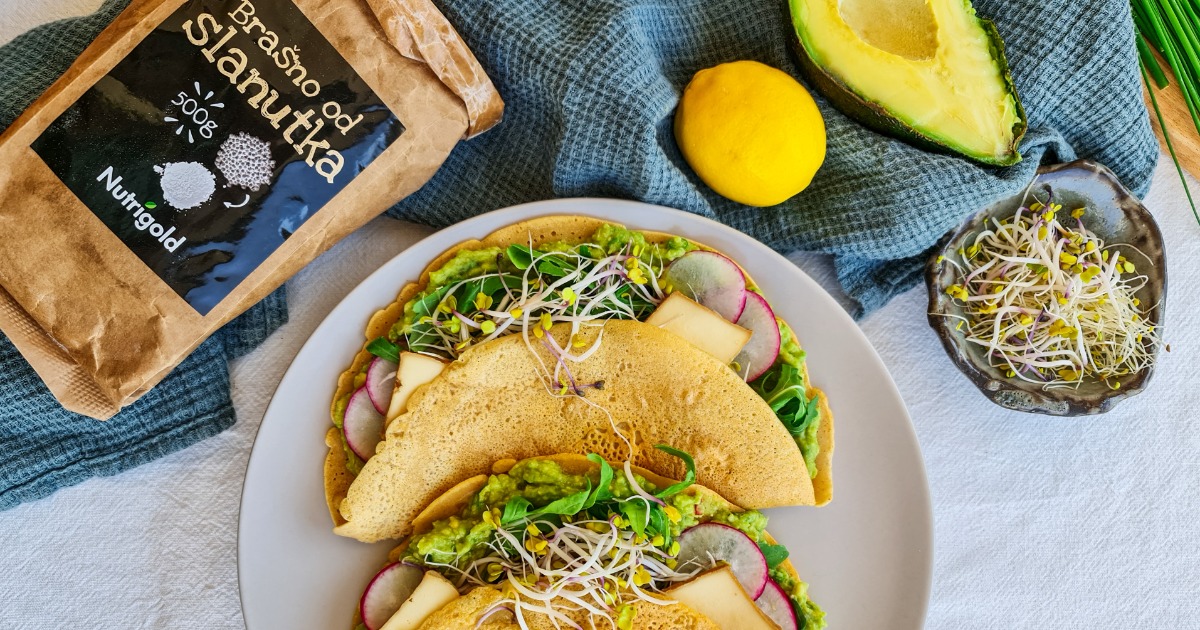 Šele nekaj sestavin, dodatki po želji in slastne palačinke so pripravljene za degustacijo. Odlično se podajo k jajcu na oko, kakšni solati ali omaki , ki smo jo danes pripravili - iz avokada!
