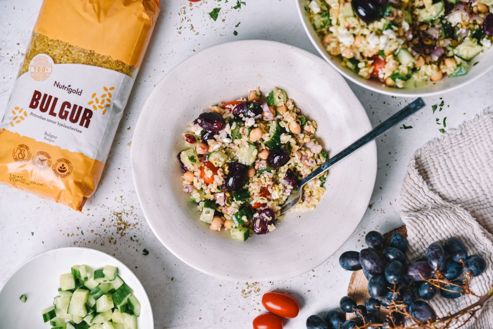 Še vedno se nam ne ljubi izgubljati časa z dolgim kuhanjem, a malo spremembe v kuhinji vedno pride prav. >Prav zato predlagamo eksotičen preobrat v vsakdanjiku – bulgur solato z pečenim grozdjem!