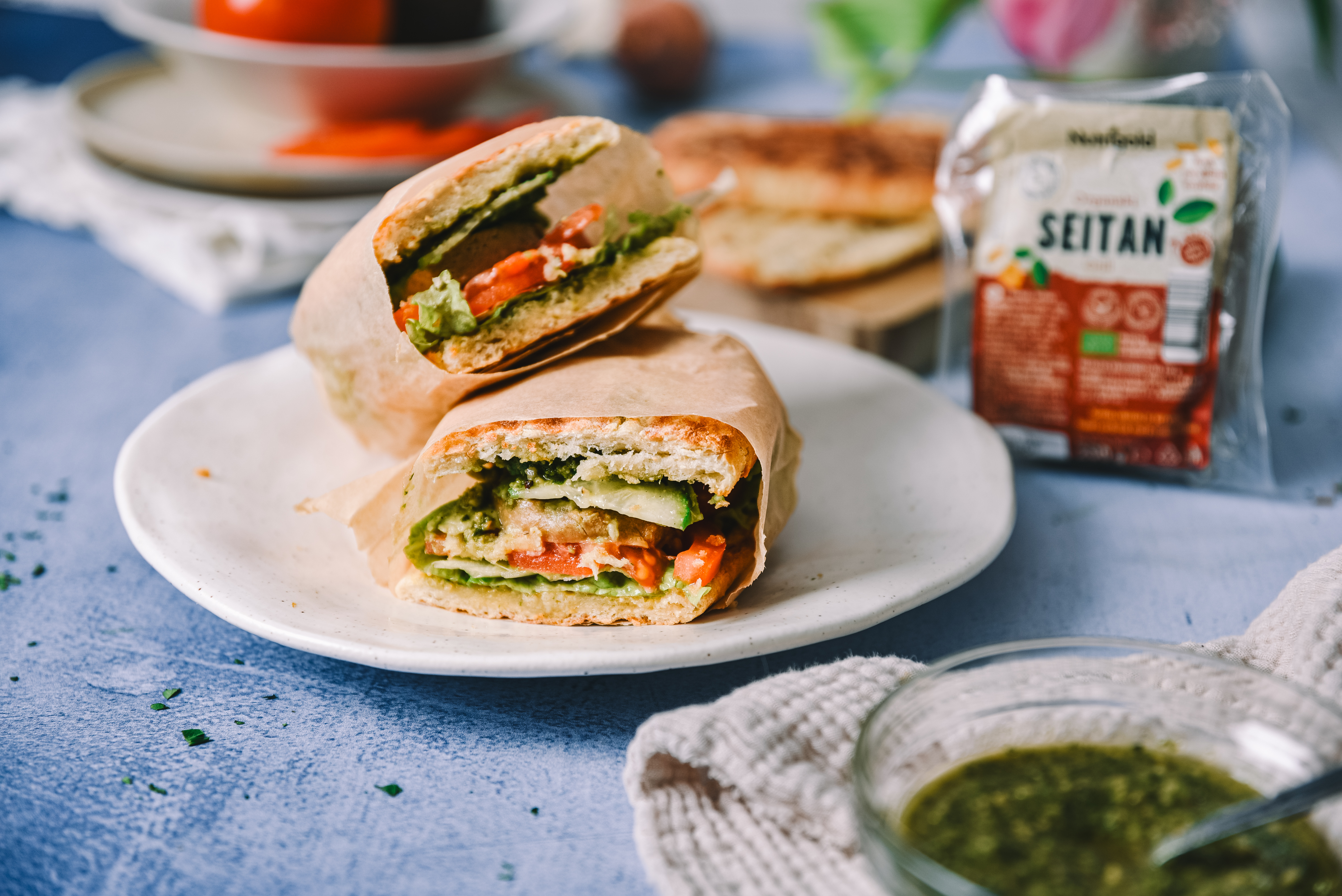 Naša različica tega klasičnega sendviča je pripravljena z okusnimi koščki seitana, sočnega paradižnika in kremastega avokada, ki so položeni na hrustljavem kruhu. Pesto genovese omaka je kraljica tega sendviča, s svojim značilnim okusom in neustavljivim vonjem. Čeprav je pesto tradicionalno pripravljen z baziliko, na naši spletni strani lahko najdete tudi številne druge recepte za ta neustavljivi namaz.
