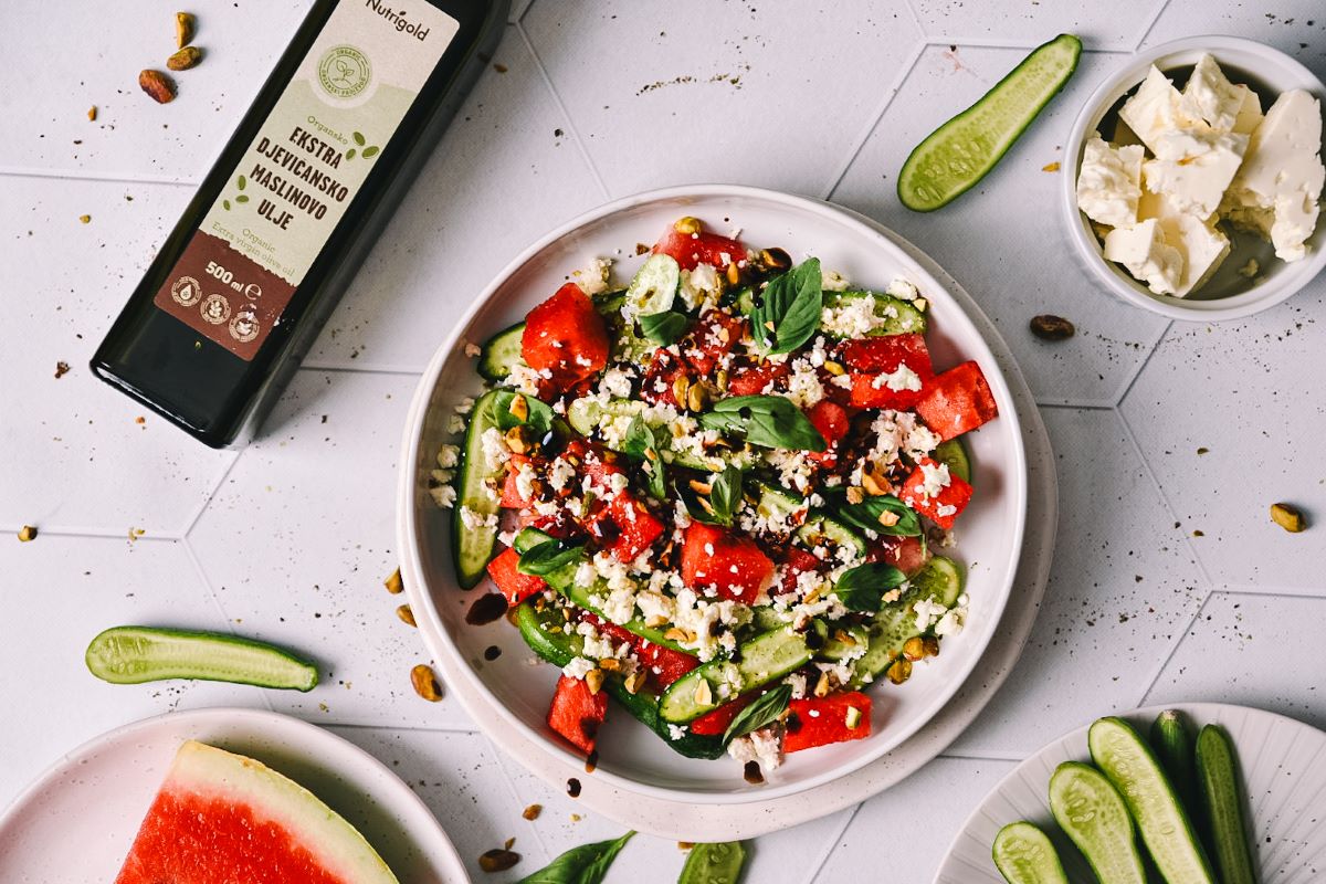 Predstavljajte si vroč poletni dan - sonce neprenehoma žge, vi pa iščete popoln način, da se osvežite. Tukaj nastopi solata z lubenico, feta sirom in kumarami - prava polenta osvežitev in rešitev pred lakoto!