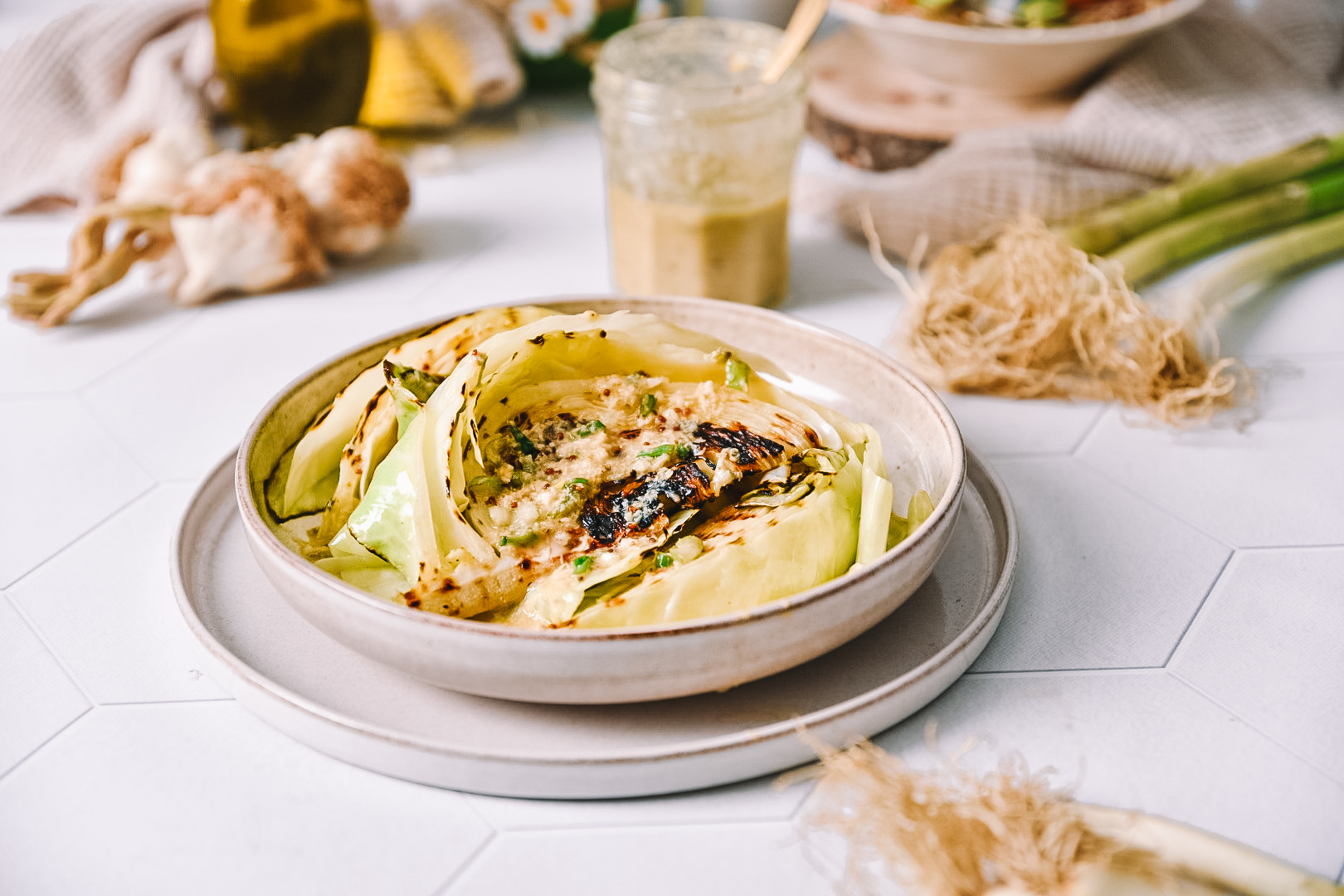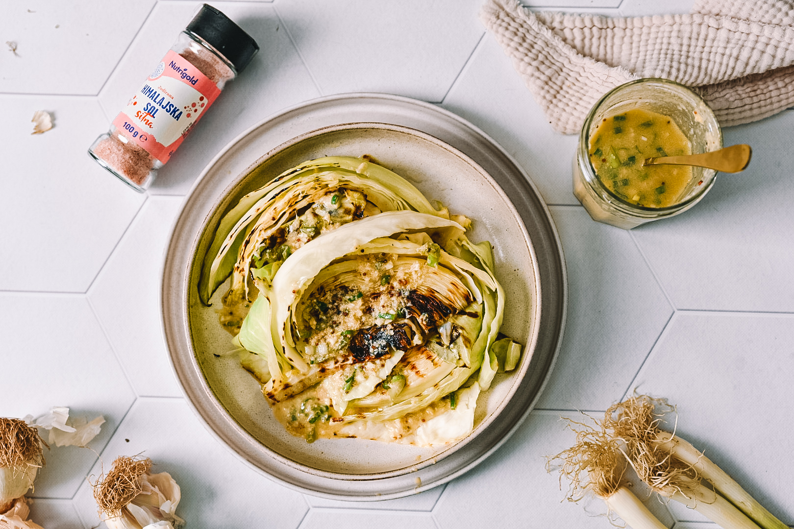 Preliv iz hrena dodaja oster in osvežilni kontrast pečenem zelju. Intenzivna aroma hrena, premešana s kislimi in pikantnimi notami kisa in česna obogati vsak grižljaj, hkrati uravnavajoč bogastvo okusov zelja.