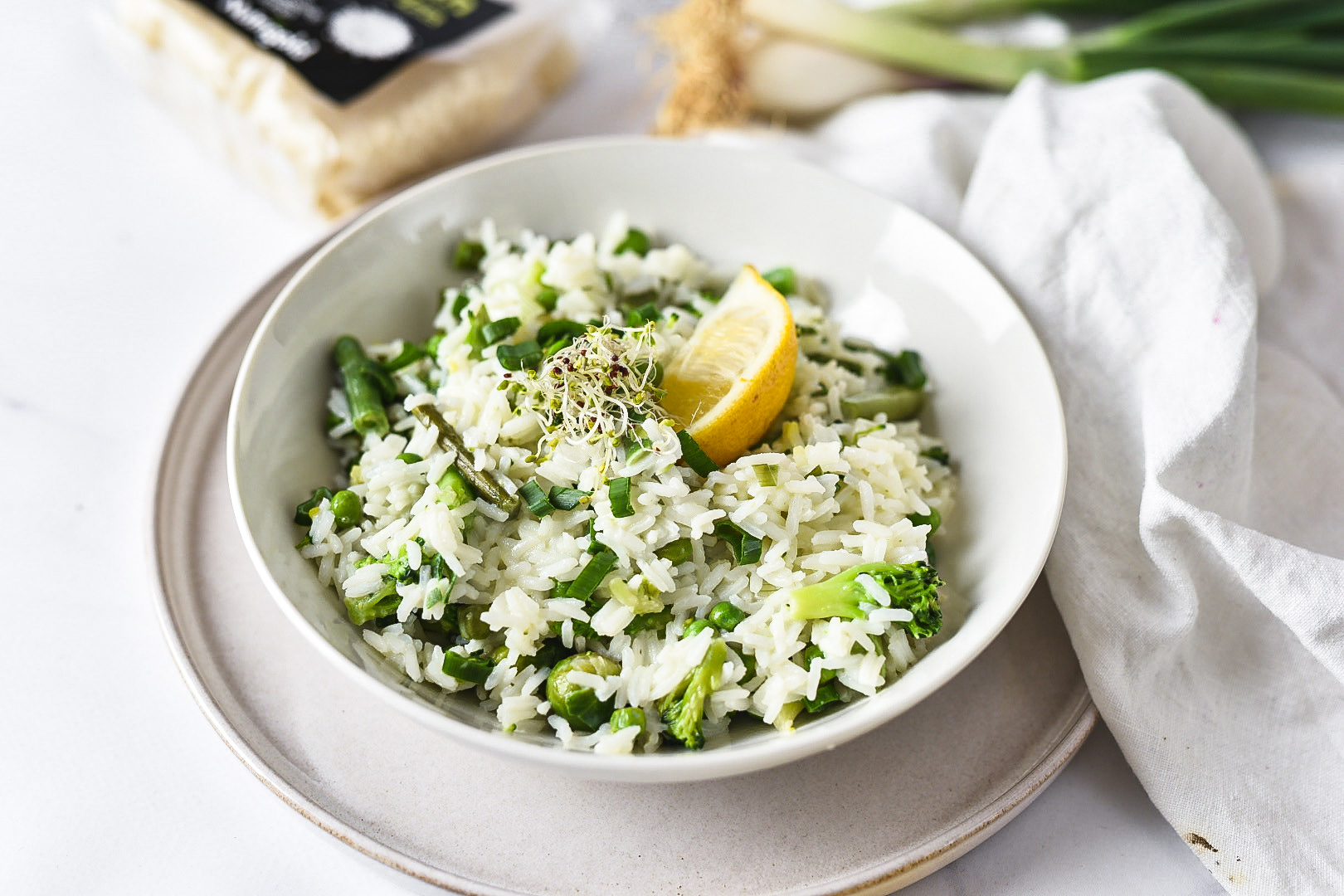 Neverjetno preprost, rižot iz špargljev, graha, brokolija in spomladanske čebule boste pripravljali le pol ure. Osnova okusa in močnejše arome je oljčno olje, in celotno jed bo še "popestrila" jušna zelenjavna aroma.