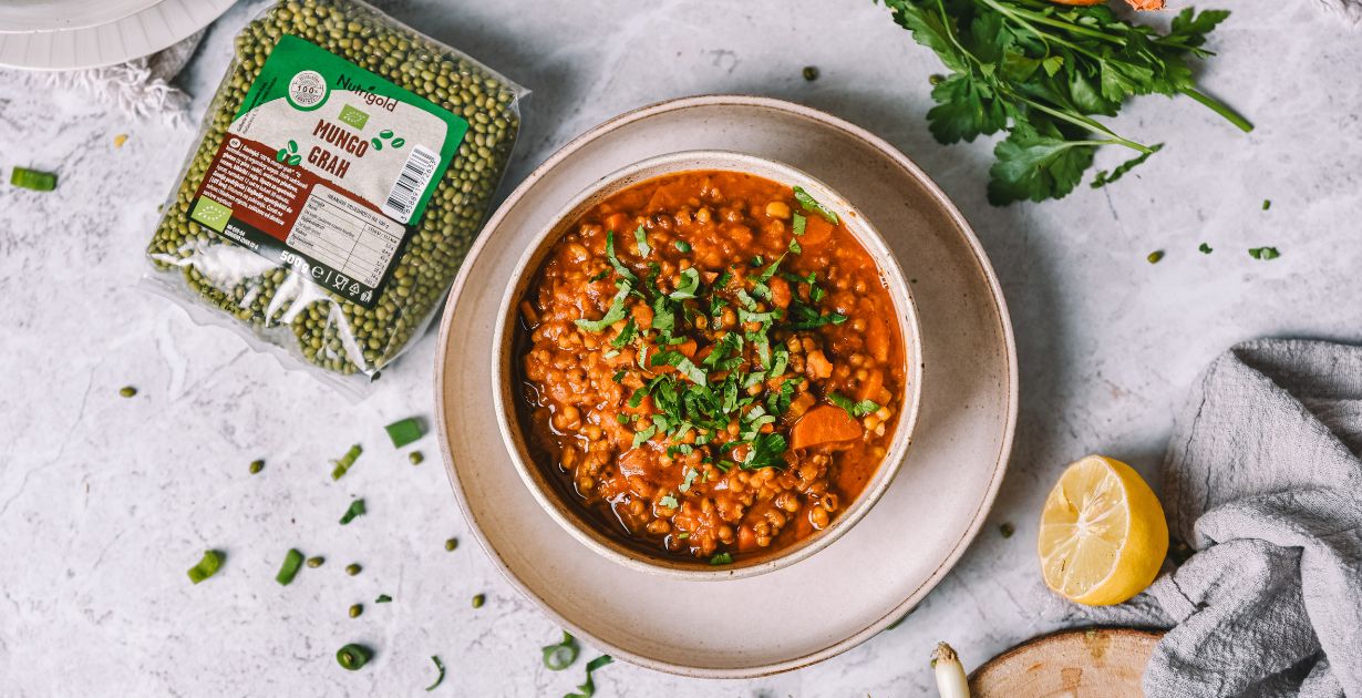 Tokrat smo ga vključili v enolončnico, ki poudari njegovo rahlo sladkasto aromo. Obstaja boljši način, da se spoprijateljite s to stročnico in jo vključite v svoj jedilnik? Poleg glavne zvezde jedi, fižola mungo, boste potrebovali še paradižnikov koncentrat, zelenjavno jušno osnovo ter začimbe, kot so poper, sol, dimljena paprika in česen. Seveda pa ne smeta manjkati niti osnova dobre enolončnice - korenje in zelena.