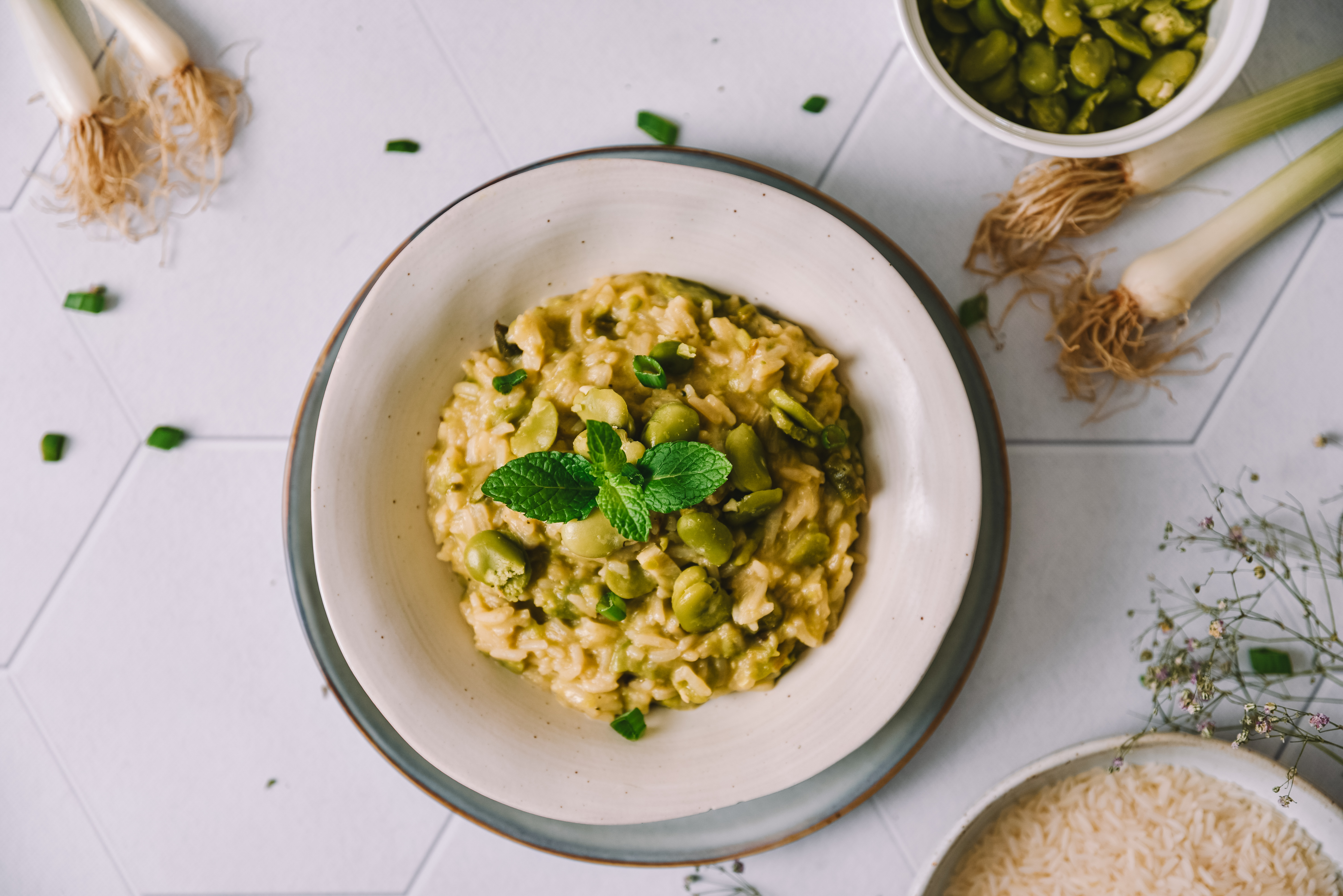 Uživajte v vsakem grižljaju te okusne rižote s šparglji in bobom!