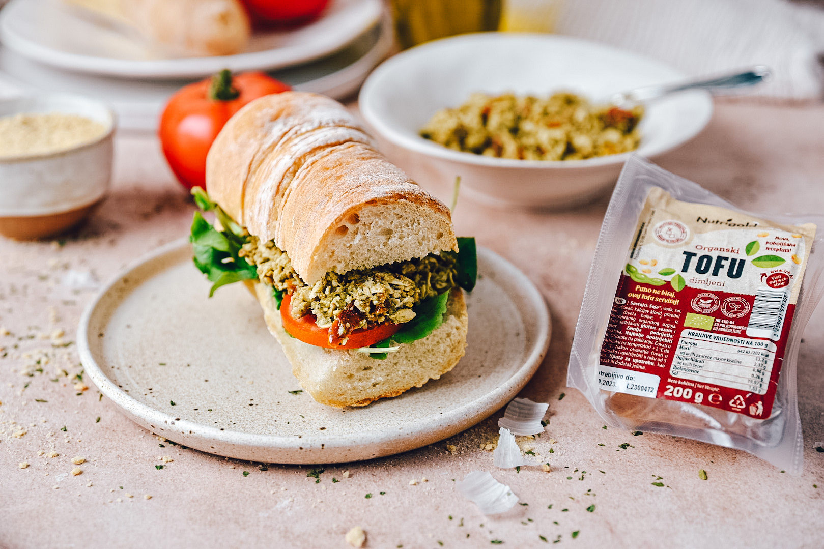Ne le da je neverjetno okusen, ta sendvič s tofujem in pestom je poln zdravih sestavin in kar je najboljše, bo vas razveselil in nasitil! Tofu ali sir iz soje je bogat z beljakovinami, vsebuje malo maščobe, zaradi svojega rahlo nevtralnega okusa, pa je najljubše živilo veganom in vegetarijancem.