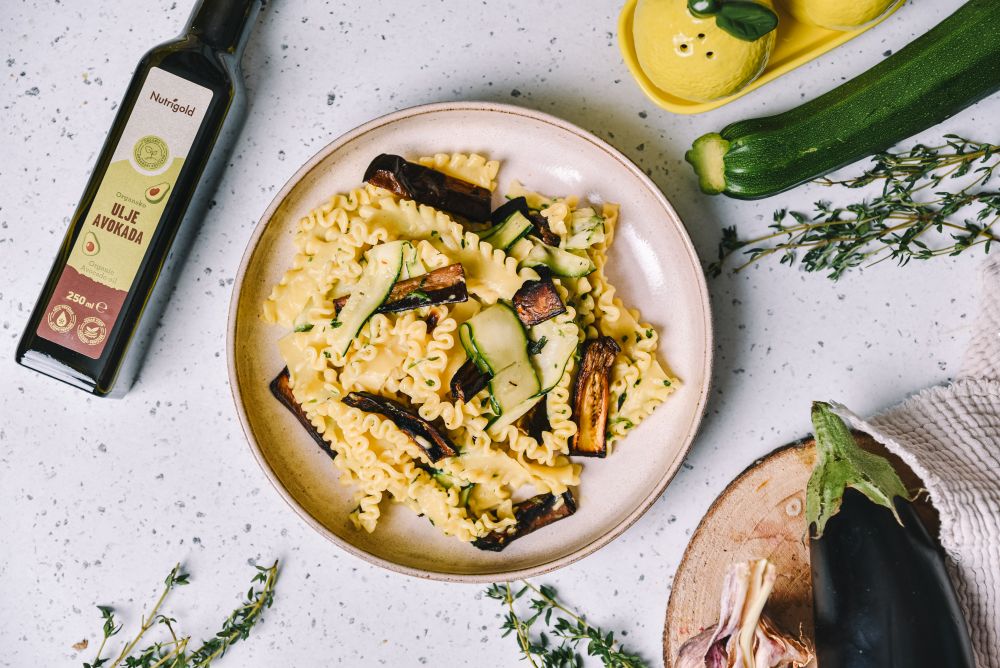 Ta kremna testenina z jajčevcem in bučko je pravi dokaz, da lahko nekaj svežih sestavin ustvari pravo bogastvo okusov.