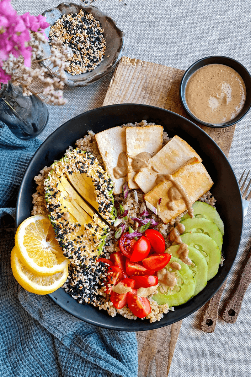 Tukaj bodo glavne vloge imele naslednje sestavine: sezam, tahini, dimljen tofu in še veliko tega zdravega in dietnega.
