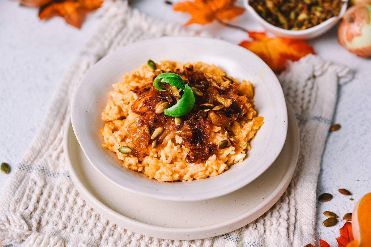 Z dodatkom karamelizirane čebule ustvarimo popolno harmonijo med sladkostjo in umamijem, ki jo preprosto morate poskusiti. Rižoto lahko obogatite z dimljeno papriko in ščepcem himalajske soli ter vse skupaj potopite v vonj belega vina, ki bo še dodatno poudaril arome.