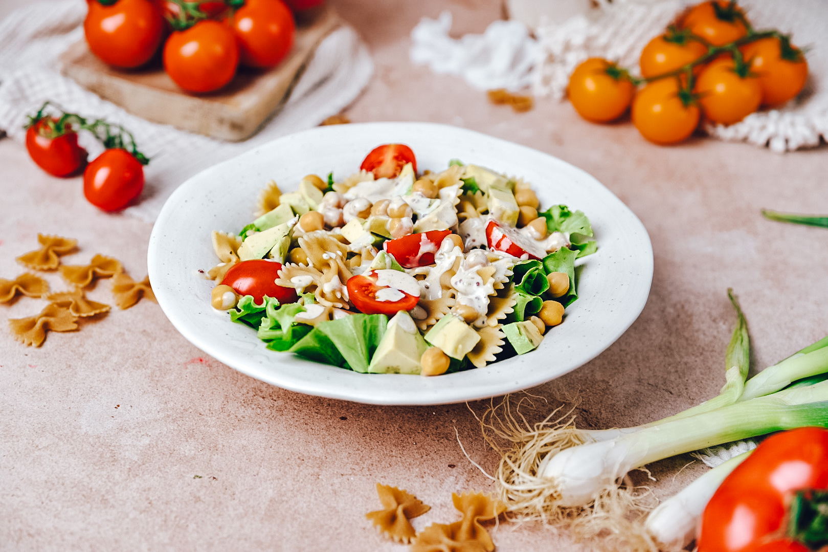 Kombinacija hrustljave zelene solate, kuhane čičerike, polne beljakovin, osvežilnega avokada in sočnih češnjevih paradižnikov bo ustvarilo harmonijo okusov in barv na vašem krožniku.
