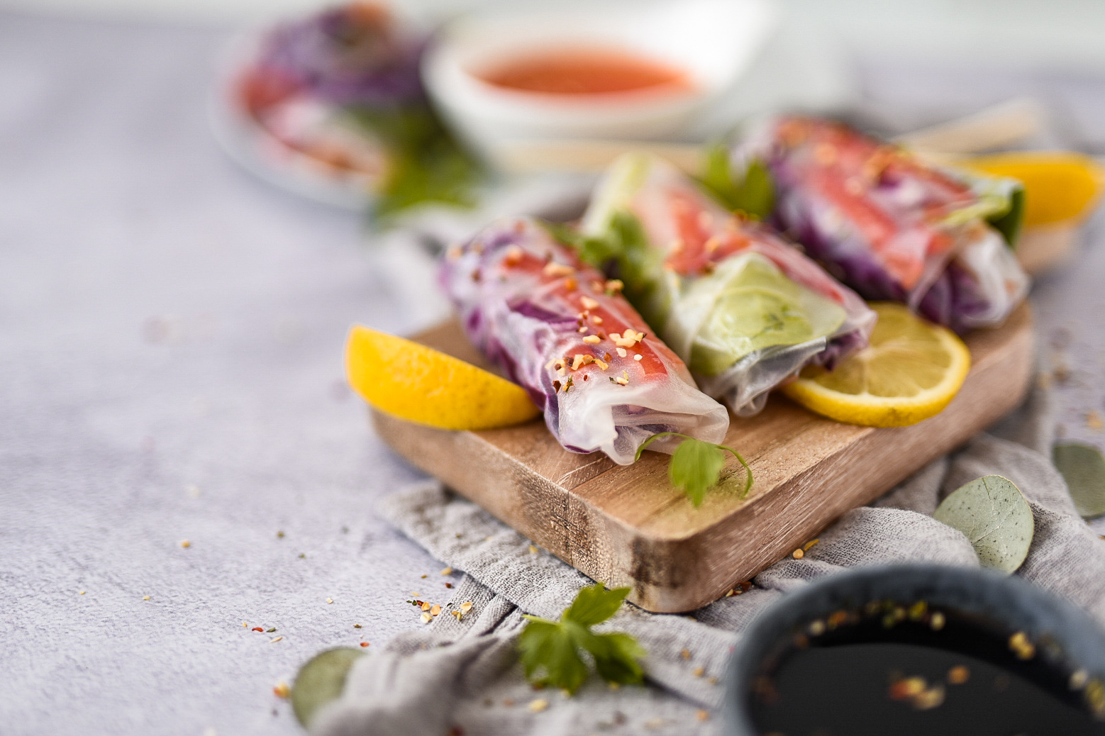 Rižev papir ne zahteva toplotne obdelave, zato lahko spomladanske zvitke postrežete takoj, ko jih zavijete ali pa jih daste gostom, da jih med druženjem napolnijo in zvijejo sami.