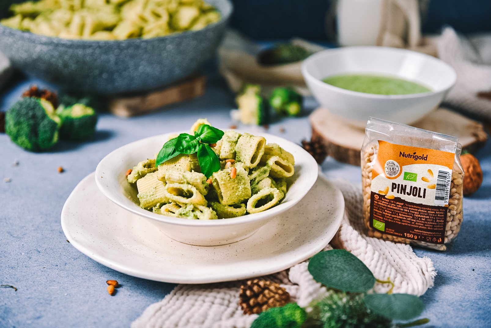 Ta ustvarjalna kombinacija testenin, svežega brokolija in aromatičnega pesta ustvarja uravnotežen obrok z visoko hranljivo vrednostjo. Brokoli je vir vlaknin, vitamina C, K, A in B6, folatov, kot tudi mineralov, kot je železo, kalcij in kalij. Razen tega, brokoli je znan po svojih antioksidativnih lastnosti, ki pomagajo pri nevtralizaciji prostih radikalov v telesu, ter pri tem zmanjšujoči tveganje za razne bolezni.