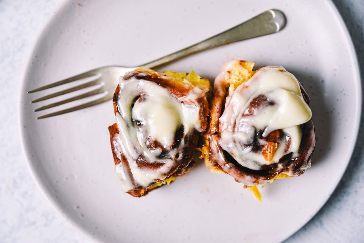 A prava čarovnija tega recepta pride šele na koncu – kremni preliv, ki odlično zaokroži celotno zgodbo. Kombinacija javorjevega sirupa, mandljevega napitka in kremnega sira daje rolicam popoln, bogat zaključek. Preliv se stopi na toplih rolicah in ustvari neustavljivo kombinacijo sladkega in kremastega.