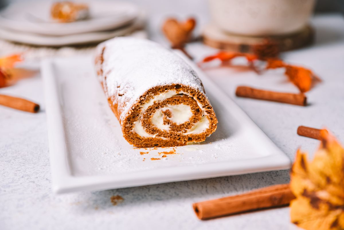 Rulada je videti prav jesenska – ponaša se z zlato-oranžnimi odtenki, ki pričarajo slikovite prizore jesenskih dni. Ko ugriznete v to nežno poslastico, vas bo pričakala mehka, gobasta tekstura, ki se odlično zlije z bogato kremo, ki je hkrati sladka in nežno slana.