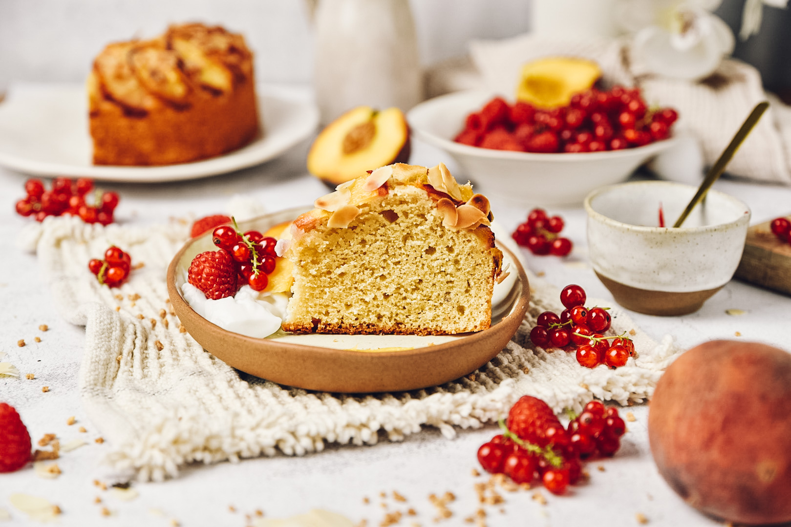 Ko uživate v tej sočni torti z breskvami, lahko pokukate v našo brezplačno kuharico za julij