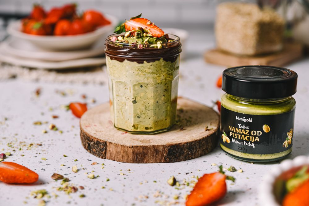 Eksotična, kremasta in obogatena s temno čokolado, pistacijami in svežimi jagodami je popolna kombinacija orientalskega šarma in zdravih sestavin.