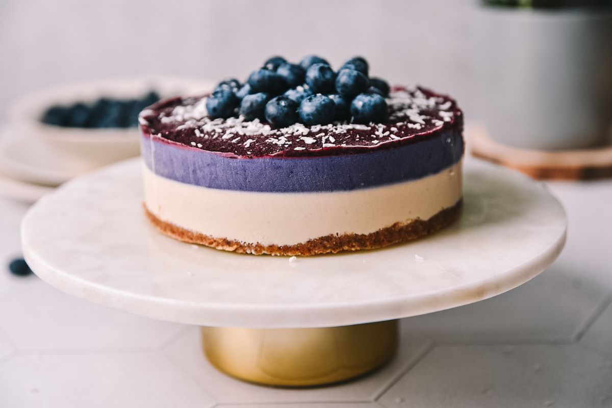 Plast z borovnicami dodaja svežino in teksturo torti, s svilnatimi chia semeni, ki ustvarjajo rahlo gelasto teksturo, ki se odlično ujema z borovnicami in sveže iztisnjenim limoninim sokom.