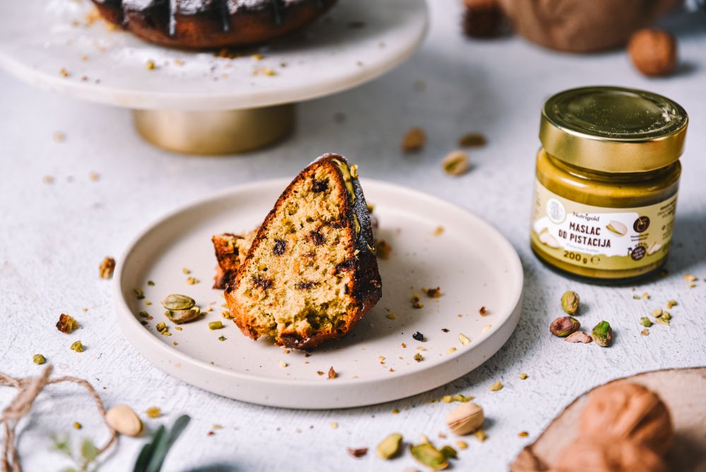 Vemo, da so pistacije trenutno eden najbolj priljubljenih dodatkov vsaki jedi, poleg tega pa niso le okusne, temveč tudi hranilno bogate. Bogate so z zdravimi maščobami, vlakninami, vitamini (zlasti vitaminoma E in B6) ter minerali, kot so kalcij, železo in magnezij. Pistacije zagotavljajo tudi močno antioksidativno zaščito, njihov naravni okus pa torti doda neustavljivo globino in prefinjenost.
