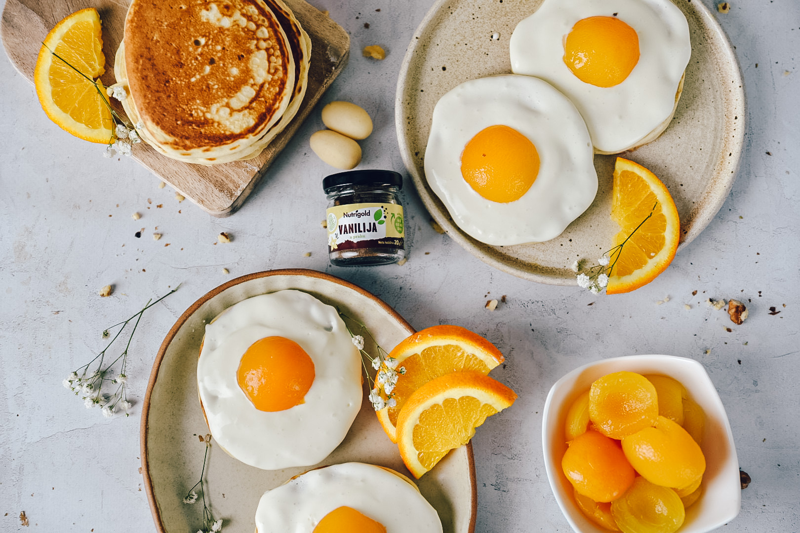 Za učinkoviti videz ter pomladnih palačink sta "krivca" grški jogurt in marelice iz kompota, pri izdelavi vam lahko pomagajo tudi vaši malčki, prepričani smo da bo rezultat takrat še slajši! ![]()