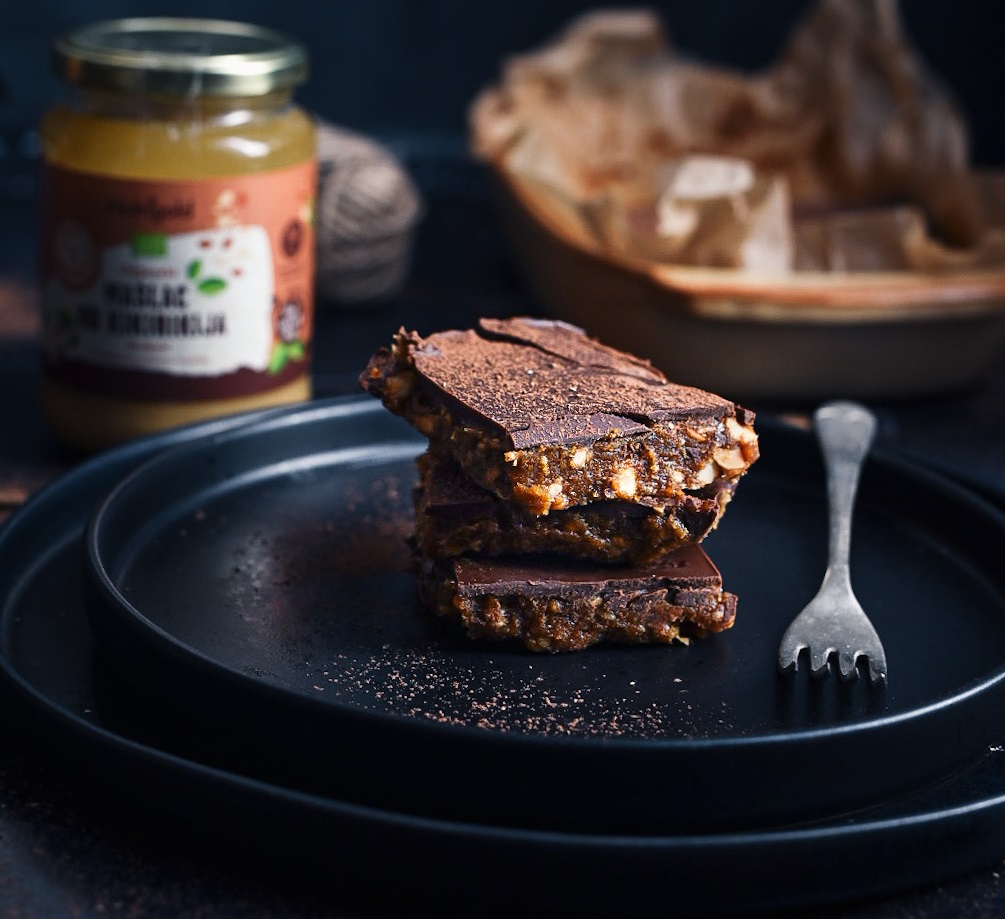 Ok, zdaj, ko smo pohvalili najbolj kremasto arašidovo maslo, je čas, da pripravimo še ostale sestavine, ki bodo iz tega recepta naredile uspešno sladico. Tu so seveda datlji, za sladkost in popolno "združevanje" sestavin, tu je tudi čokolada, brez katere ne gre. Izberite kakšno temno različico, saj z datlji in agavinim sirupom te kocke ne bodo grenkega po okusa.