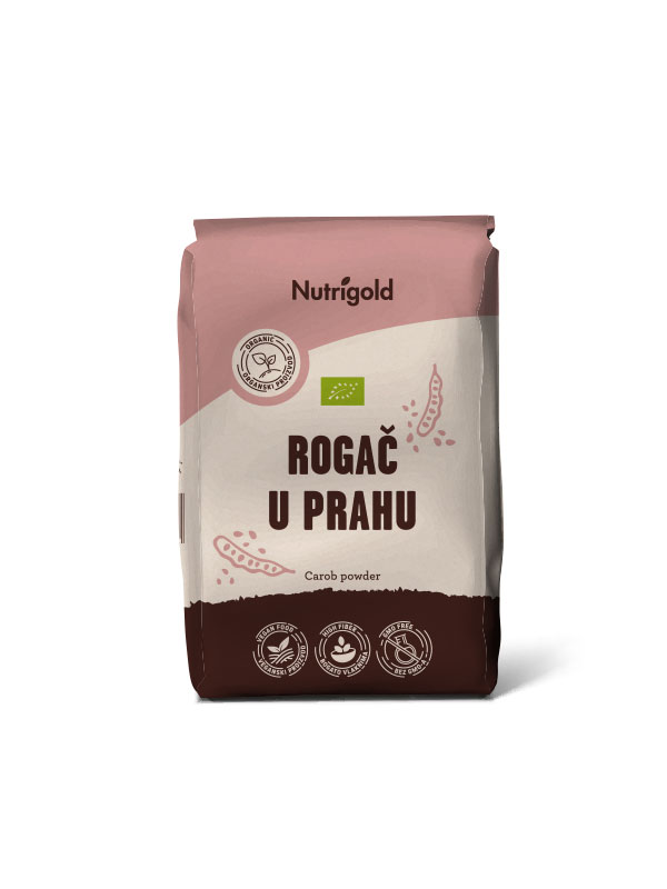 Nutrigold rožič v prahu je 100% ekološki izdelek, pridobljen iz najbolj kakovostnih stročnic rožiča, ki prehajajo skozi postopek finega mletja da bi dobili bogat prah, ki je zelo podoben kakavu, oziroma čokoladi.